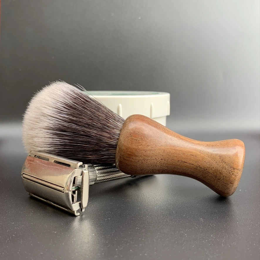 Traditional shaving brushes were made with badger hair however due to the increasing concerns regarding animal welfare each handle has now been finished with a synthetic pure imitation badger knot. These also the have the additional benefits of being fragrance neutral, fast drying, longer lasting and, although extremely soft on the skin, they are robust, non absorbent and require less shaving cream or soap to generate a rich and luxurious lather.