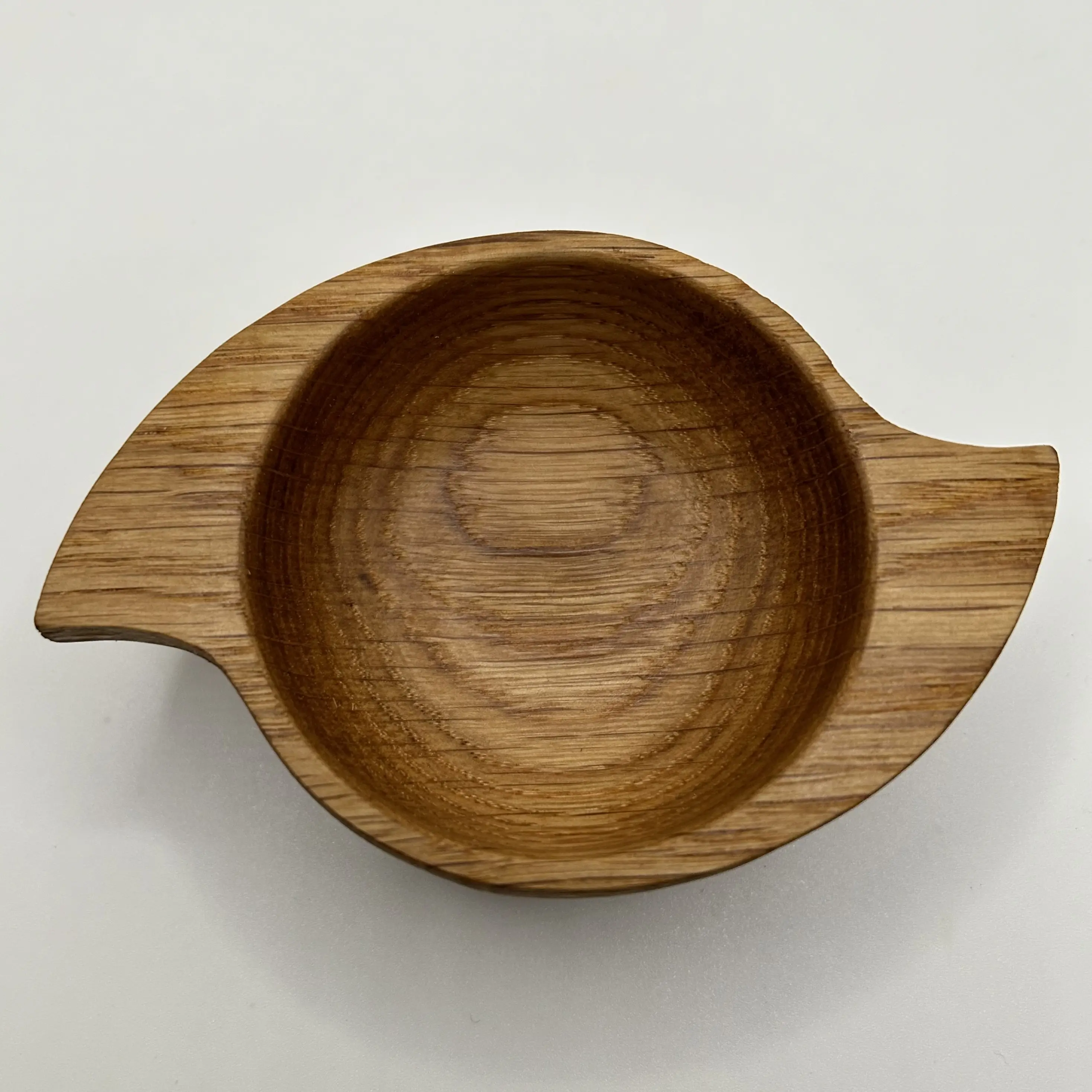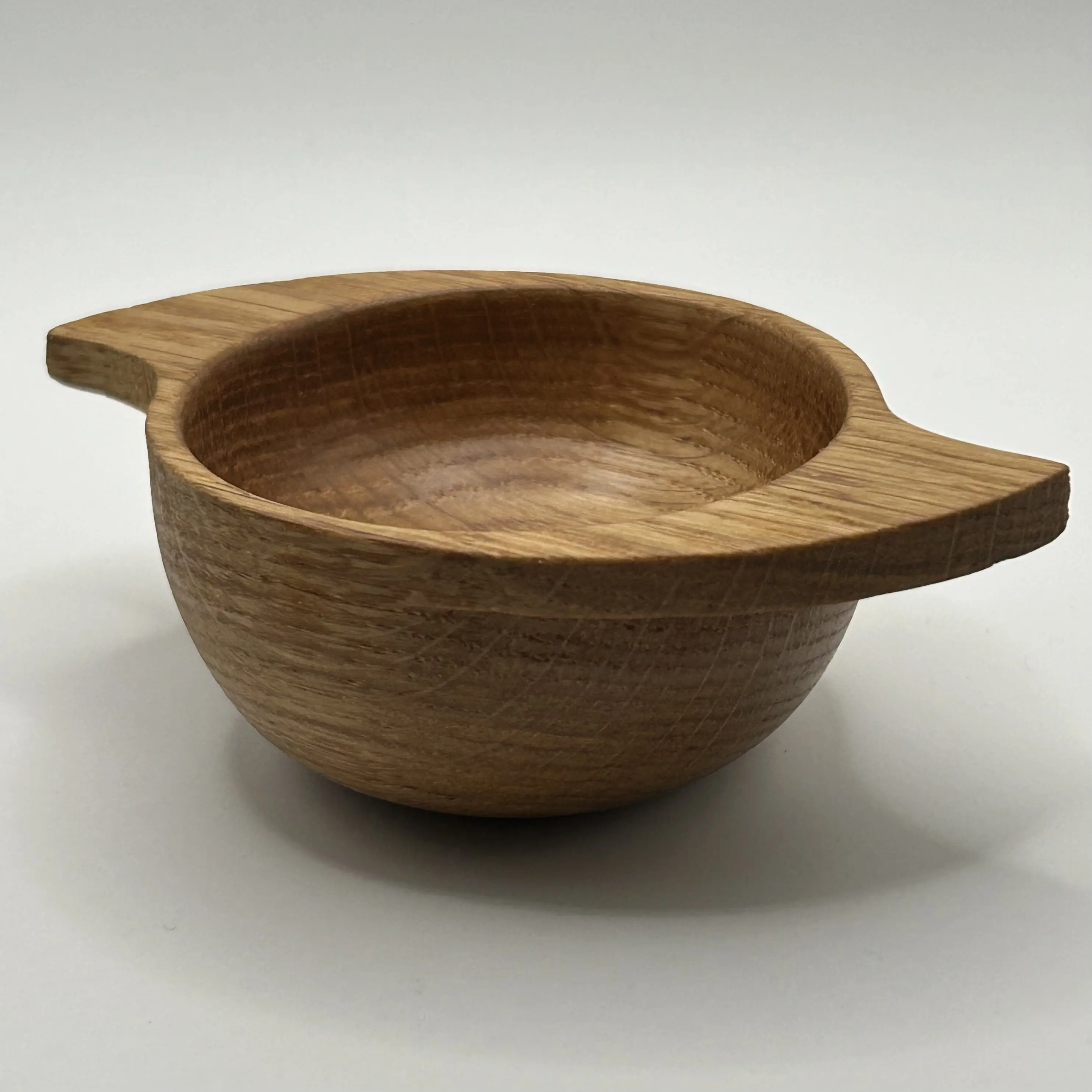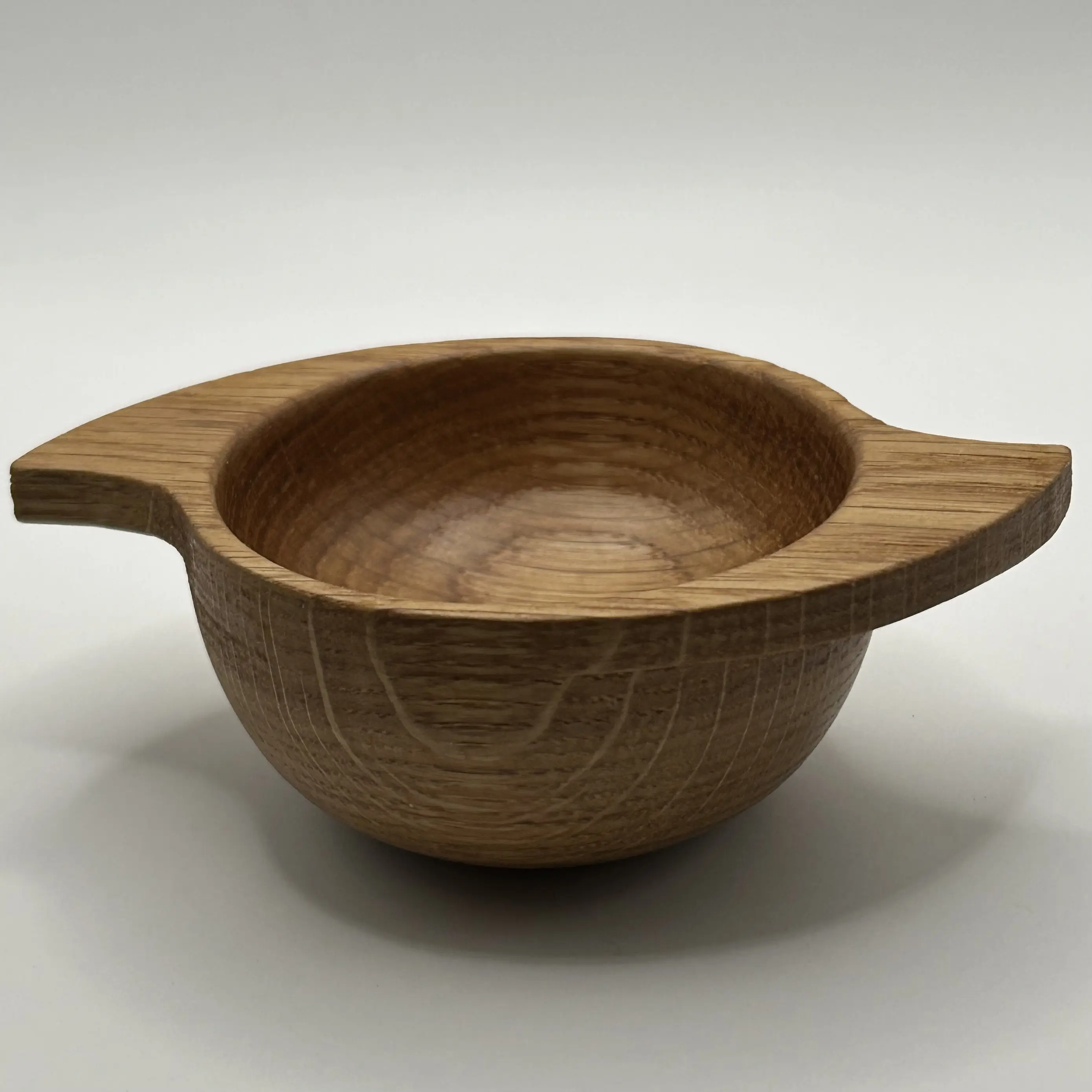This contemporary winged quaich has been cut and hand turned on a lathe from a single piece of locally sourced oak before being sanded and finished with pure tung oil, which is natural, non toxic and food safe. A final coat containing natural wax and oil has then been applied to both protect and highlight the stunning grain.