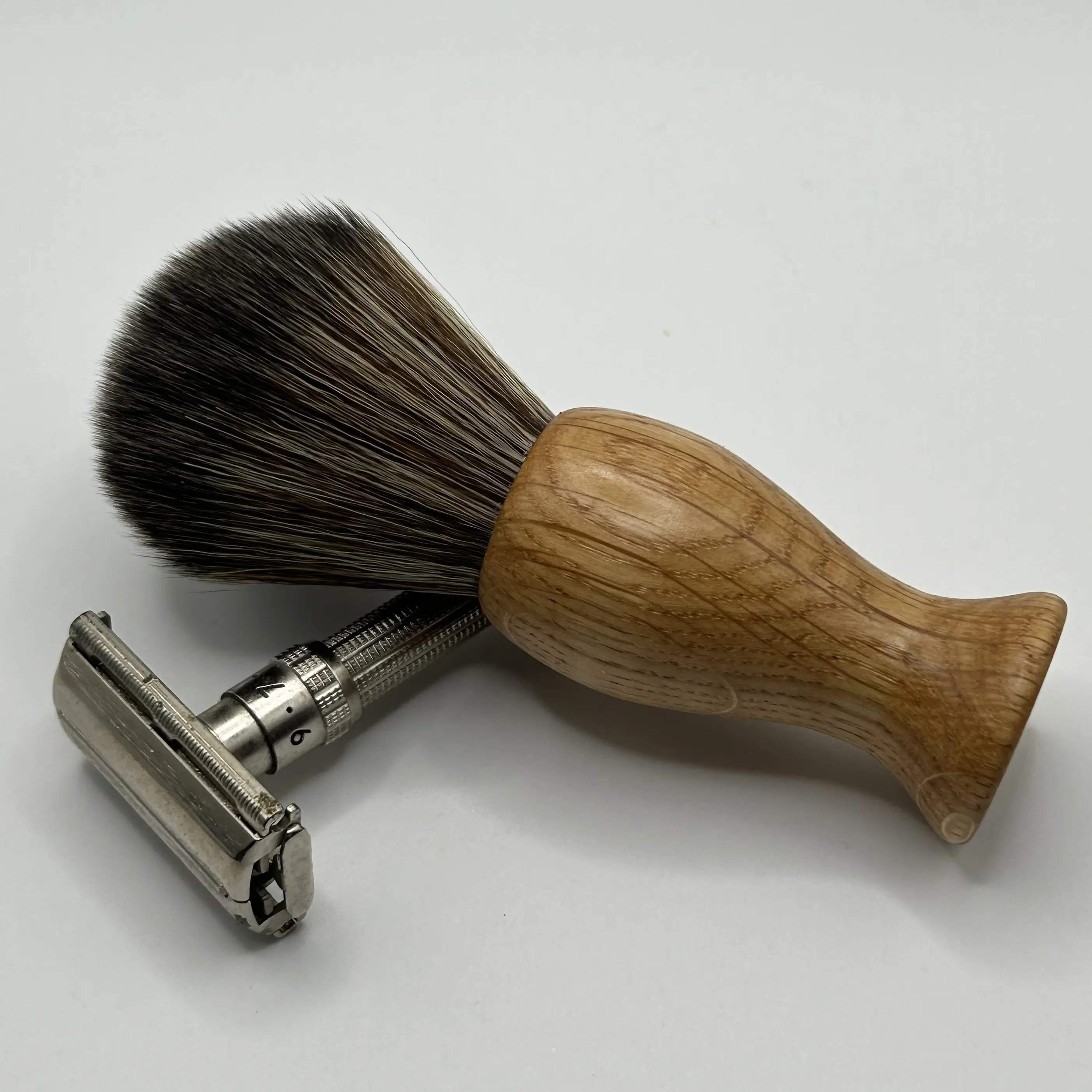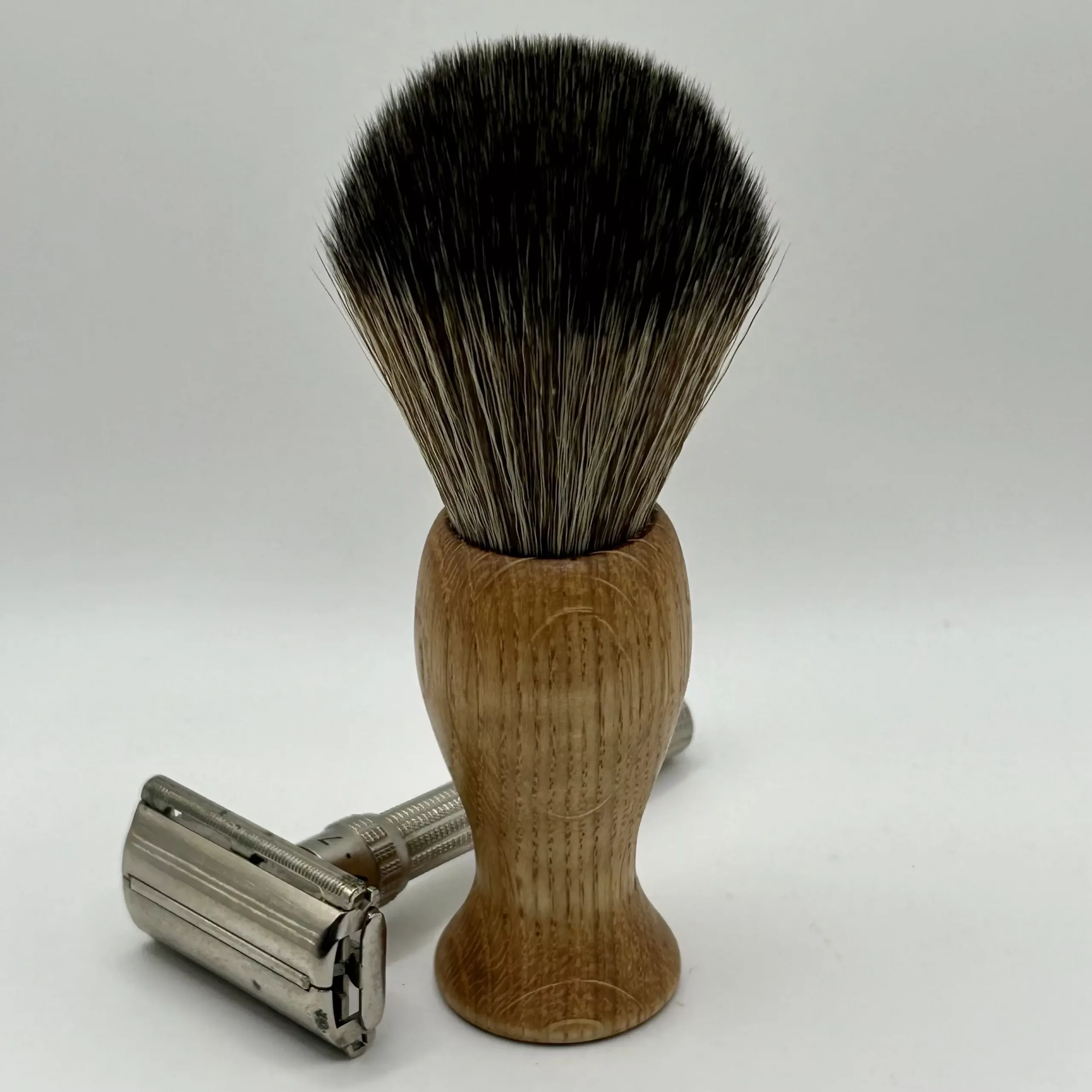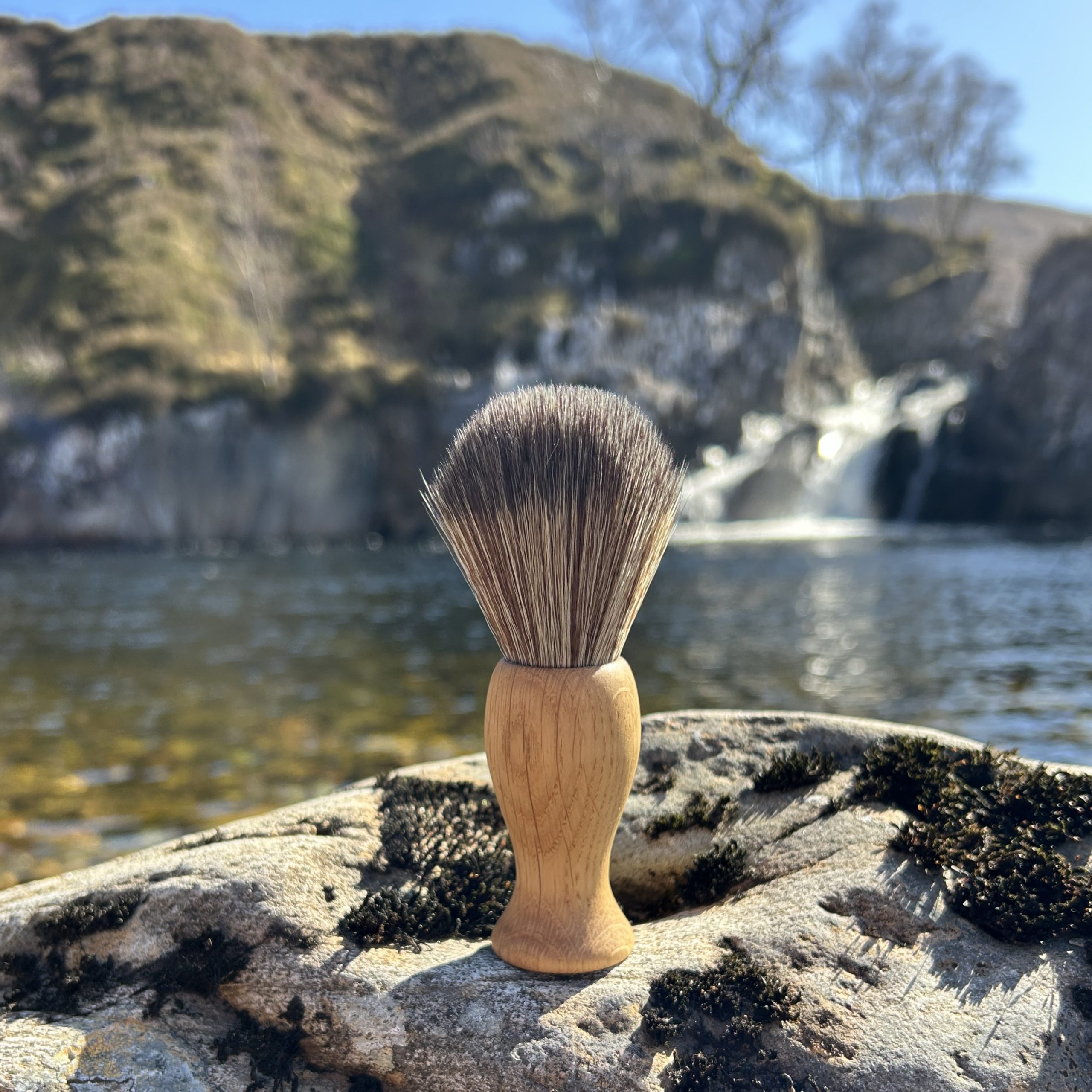 This beautifully grained shaving brush has been handcrafted from a single piece of locally sourced Scottish oak.